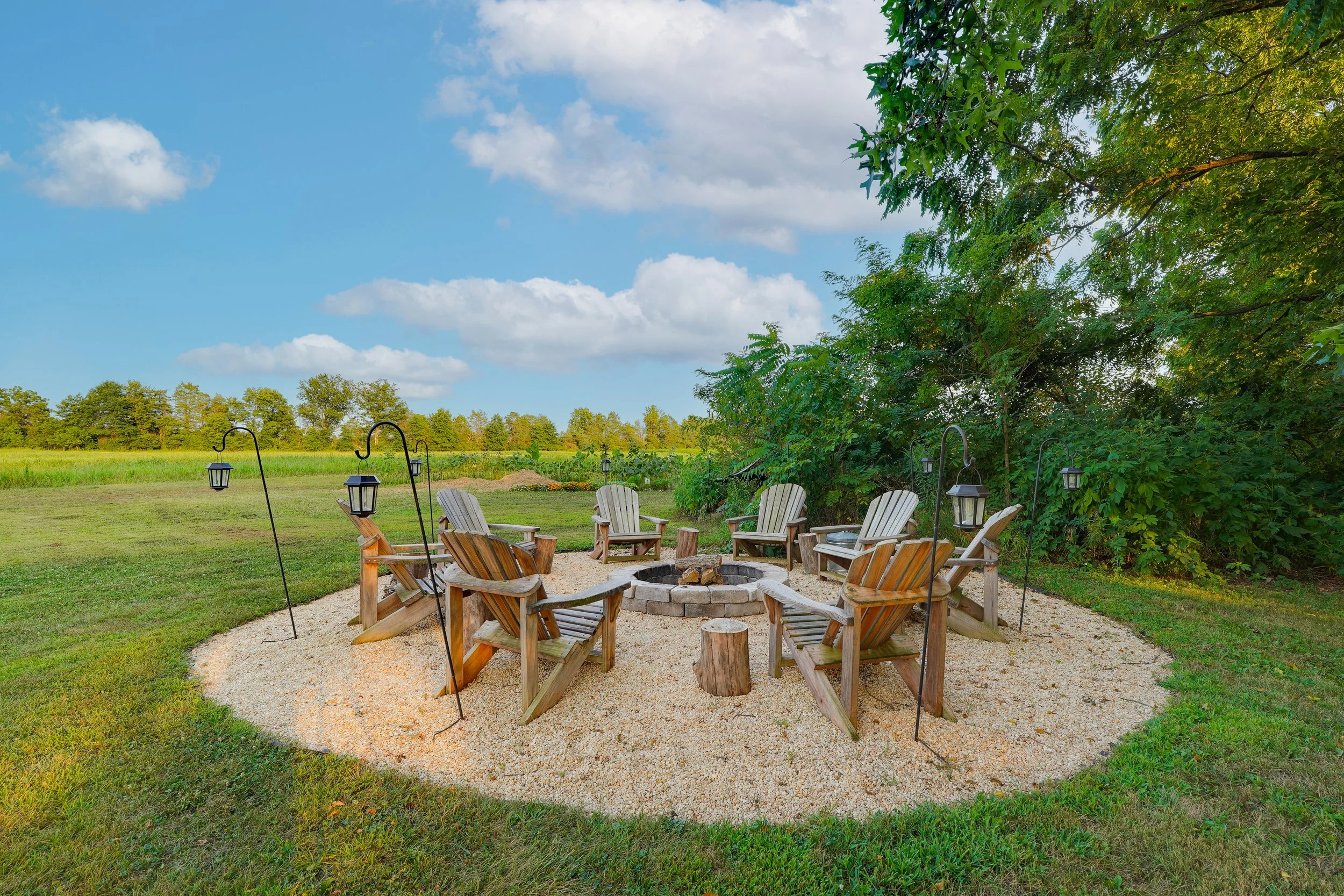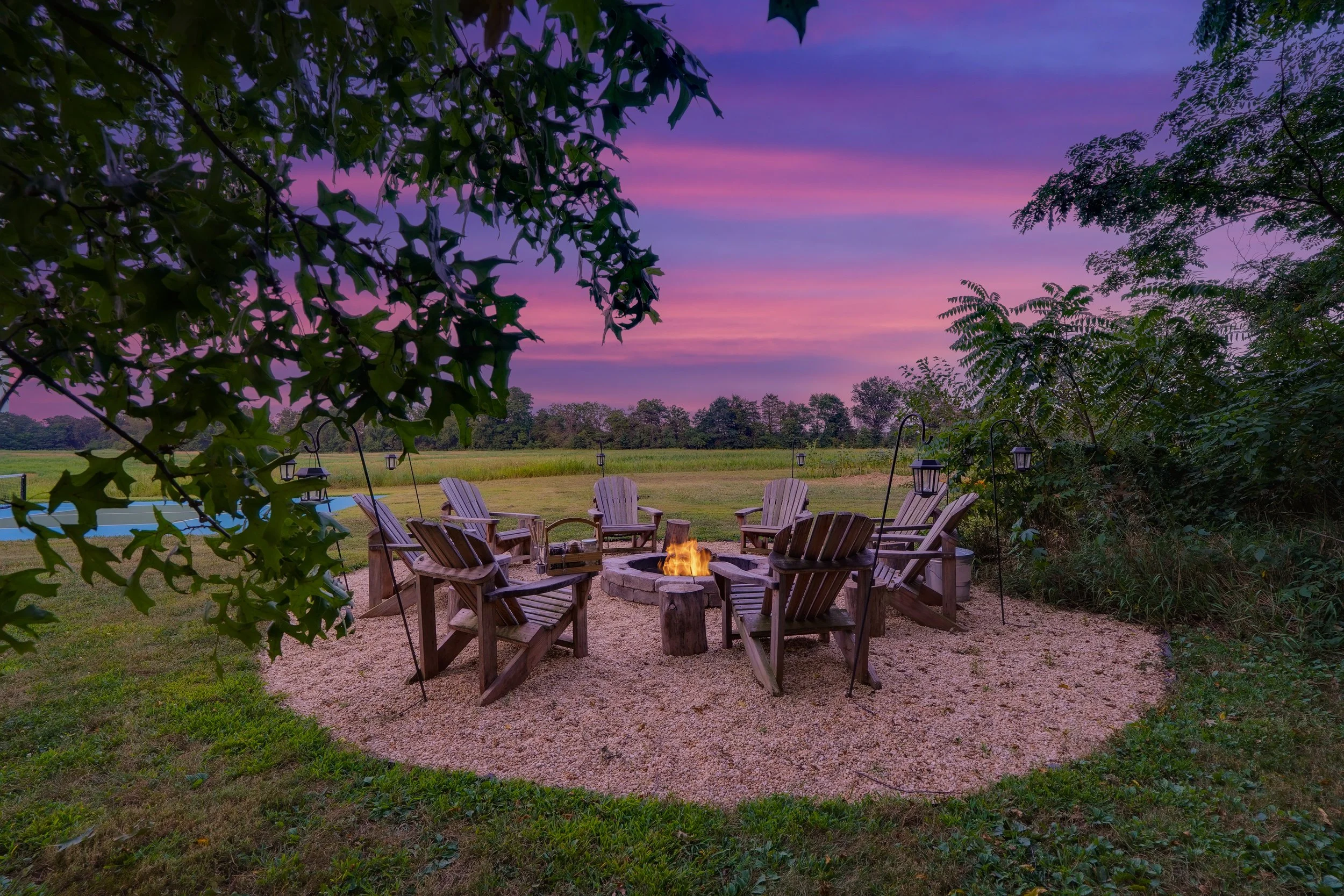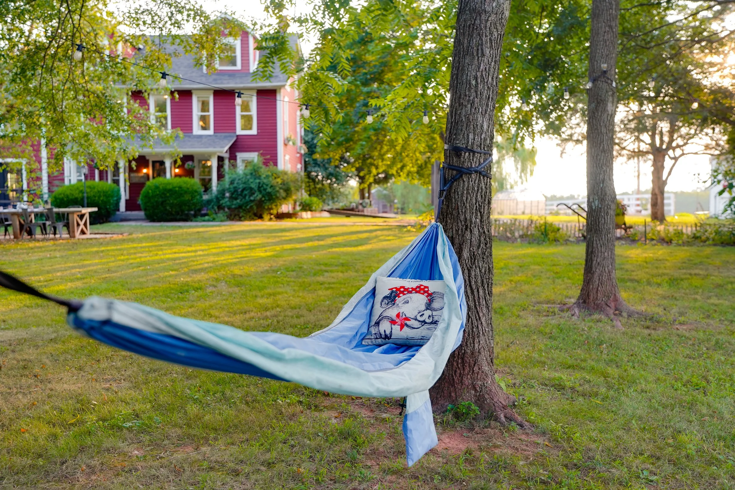 Gettysburg Farmstead, nestled in Adams County, Pennsylvania, graces the tranquil countryside, just a brief drive from the area's premier attractions. Four guest rooms are located in the charming farmhouse constructed in 1920 set amidst 16 acres of serene landscape. Immerse yourself in the beauty of the property playing a game of pickleball, enjoying a meal at the large outdoor table under a canopy of twinkling lights, gathering around the bonfire in the evenings, unwinding in a hammock, enjoying a refreshing beverage on the porch swing, or marveling at the historic barn from the Civil War era on the property.
